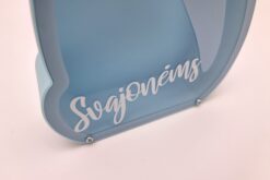 Ant skaidraus plastikinio dangtelio galime užrašyti vaikučio vardą ar kitą tekstą. Po užsakymo pateikimo, mes visada atsiunčiame taupyklės su Jūsų tekstu projektą patvirtinimui.