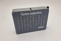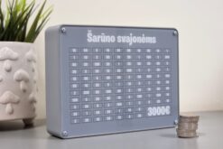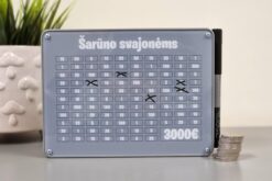Taupyklė su skaičiais – puiki dovanos idėja gimtadienio ar kita proga. Galime užrašyti bet kokį tekstą. Taupyklės esmė tokia, kad kiek pinigų įdedi, tokį skaičiuką užbrauki. Užbraukus visus skaičiukus, būsite sukaupę 5000 eur. Jeigu reikia kitos sumos rašykite el paštu info@goltas.lt