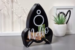 Taupyklė juoda Raketa – puiki dovanos idėja tiek vaikams, tiek suaugusiems kosmoso mylėtojams. Taip pat puikus kambario dekoro elementas!