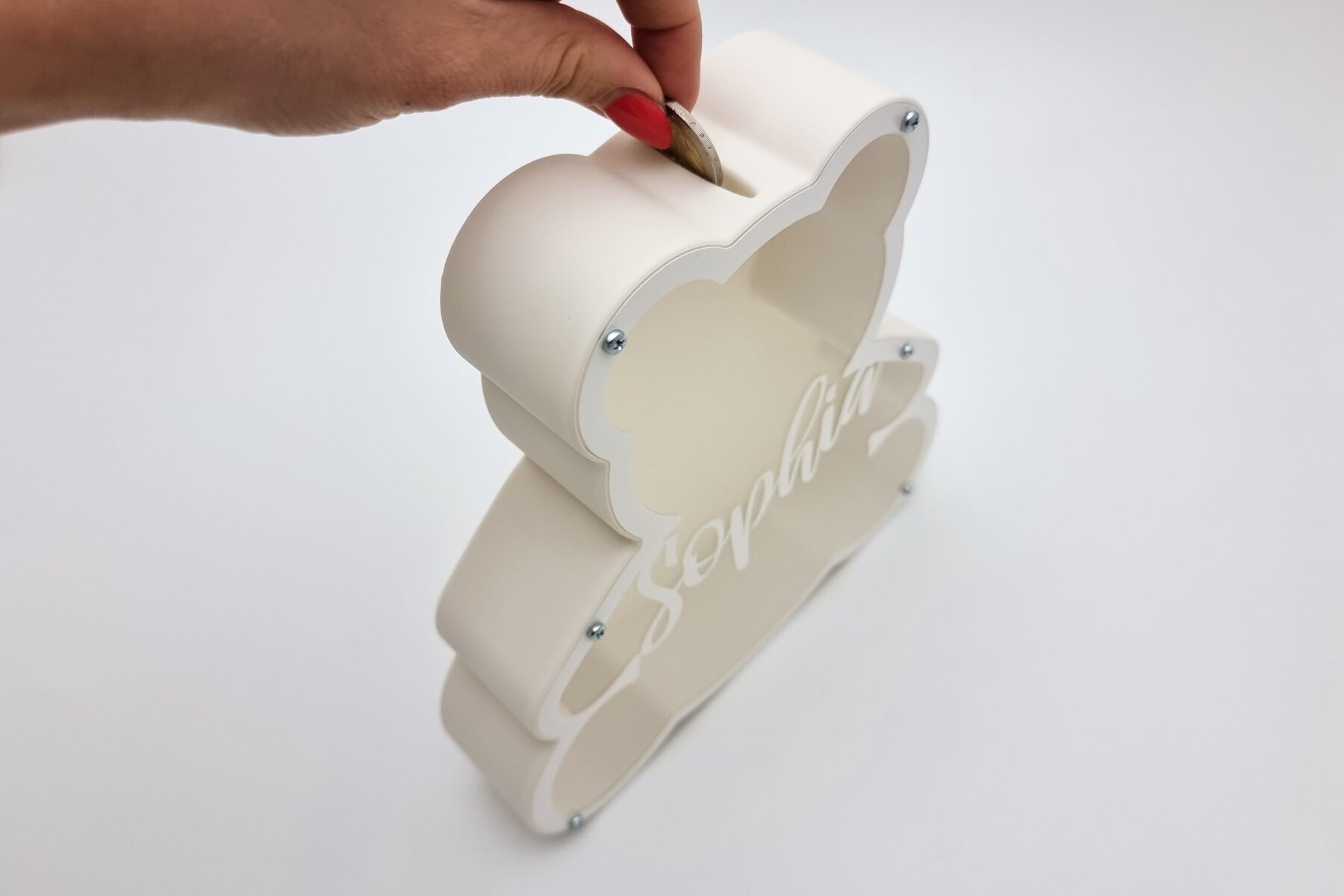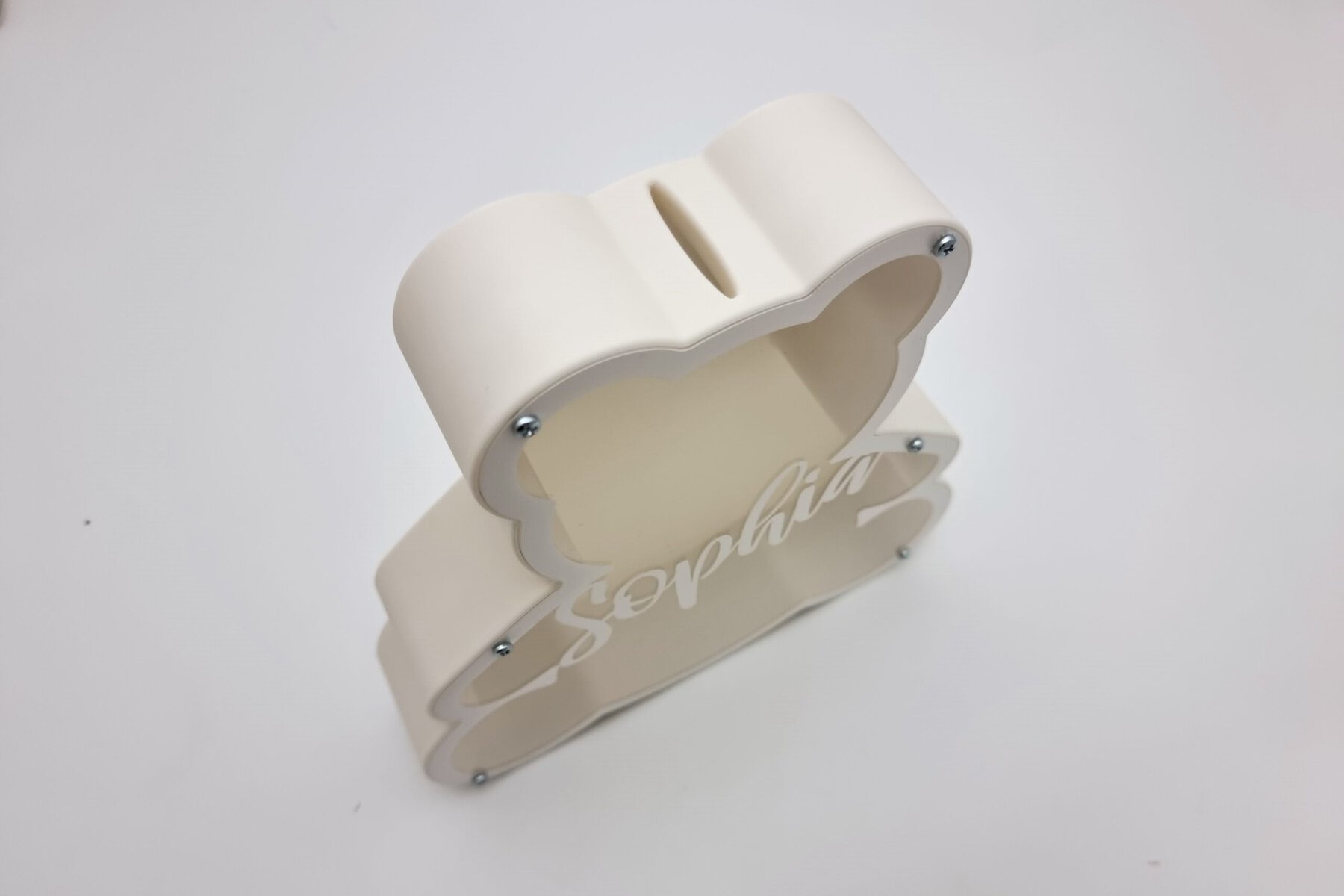 Taupyklė Baltas Meškutis pagaminta 3d spausdintuvu iš PLA plastiko.
