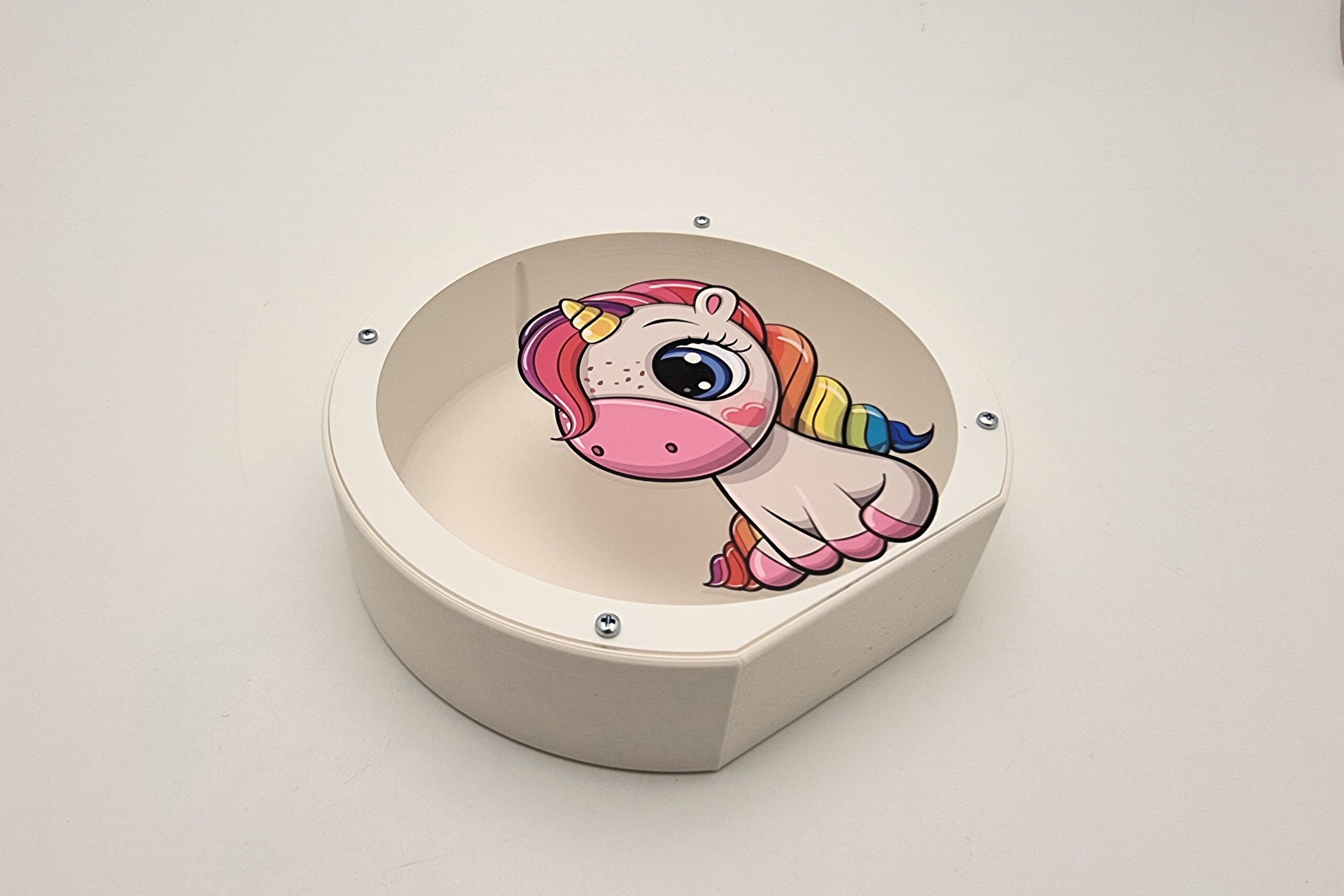 Taupyklė Vienaragis pagaminta 3d spausdintuvu iš PLA plastiko.