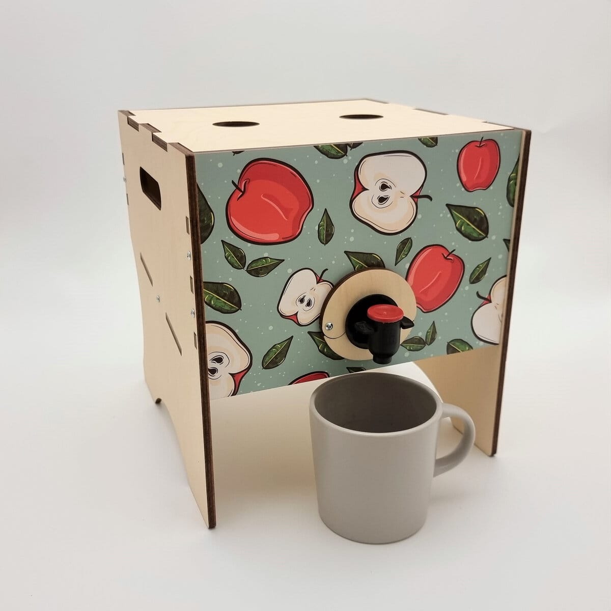 Medinis sulčių laikiklis skirtas dėti 3 arba 5 litrų sulčių maišelį su kraneliu. Laikiklis pristatomas nesurinktas. Prekės komplektą sudaro medinės detalės, atsuktuvas ir varžteliai, reikalingi laikiklio surinkimui.