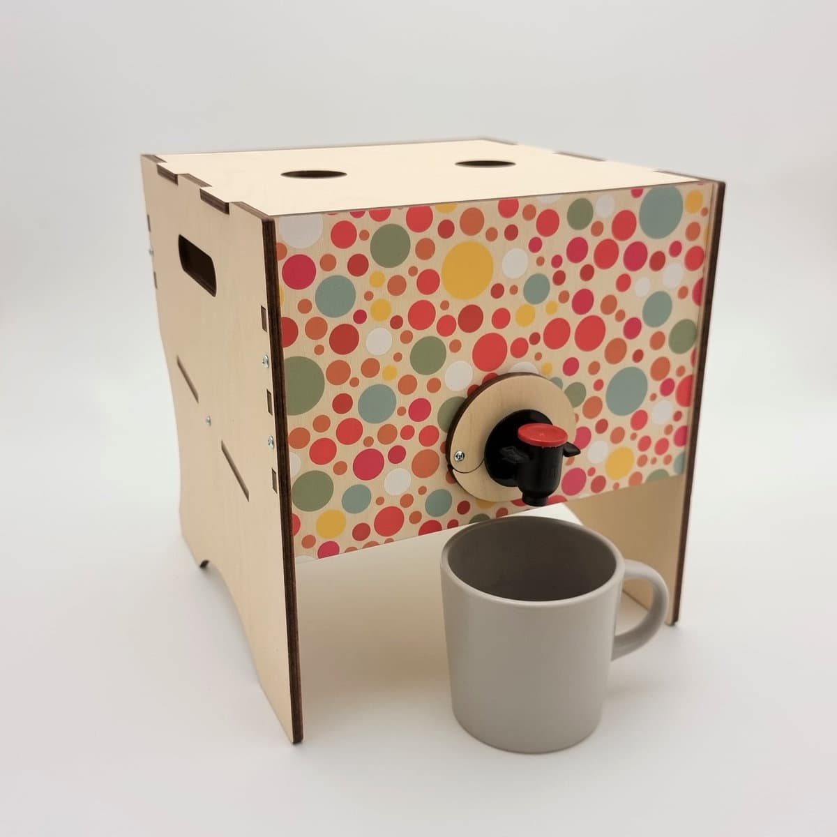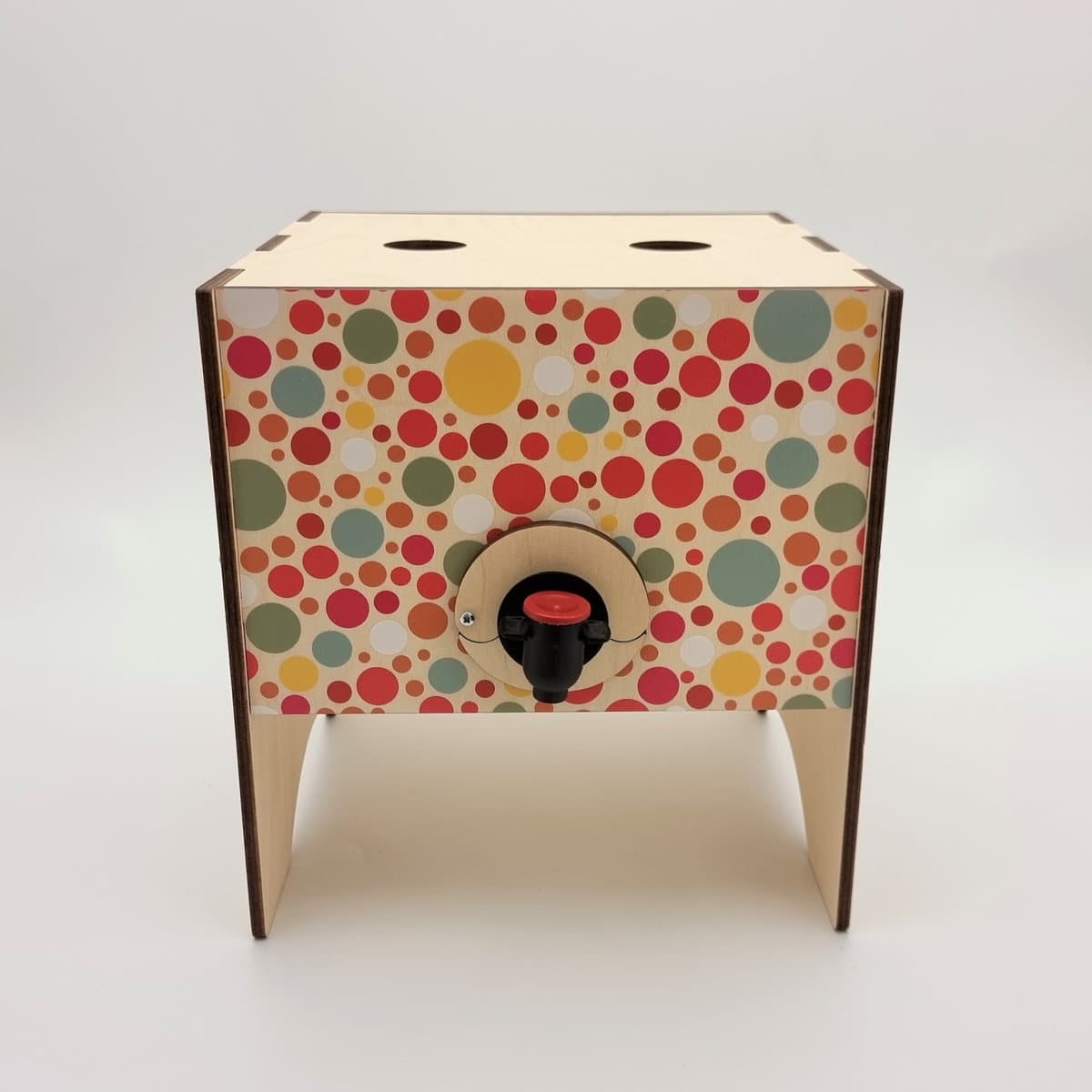 Medinis sulčių laikiklis skirtas dėti 3 arba 5 litrų sulčių maišelį su kraneliu. Laikiklis pristatomas nesurinktas. Prekės komplektą sudaro medinės detalės, atsuktuvas ir varžteliai, reikalingi laikiklio surinkimui.