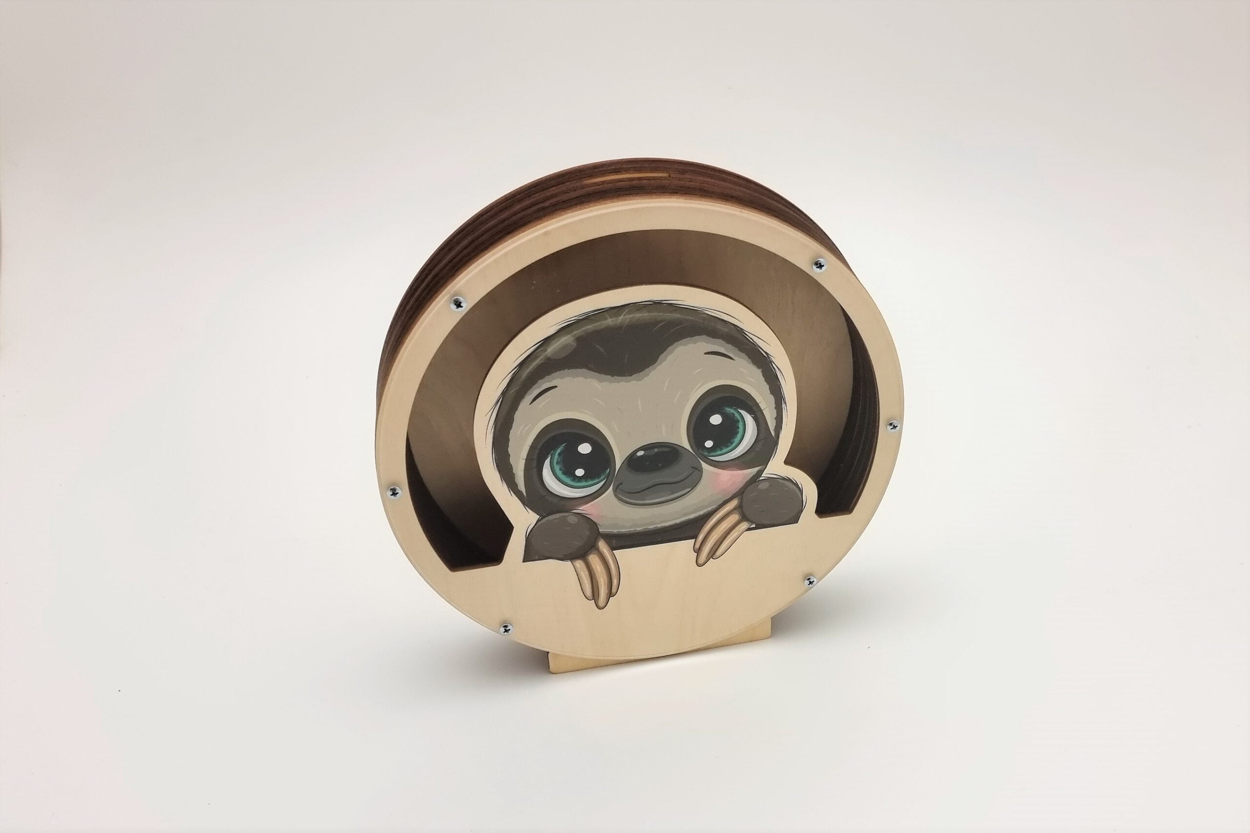 Medinė taupyklė tinginys- stilinga dovanos idėja vaikui gimtadienio, krikštynų ar kita proga. Medinė taupyklė tinginys tikrai patiks kiekvienam vaikui!