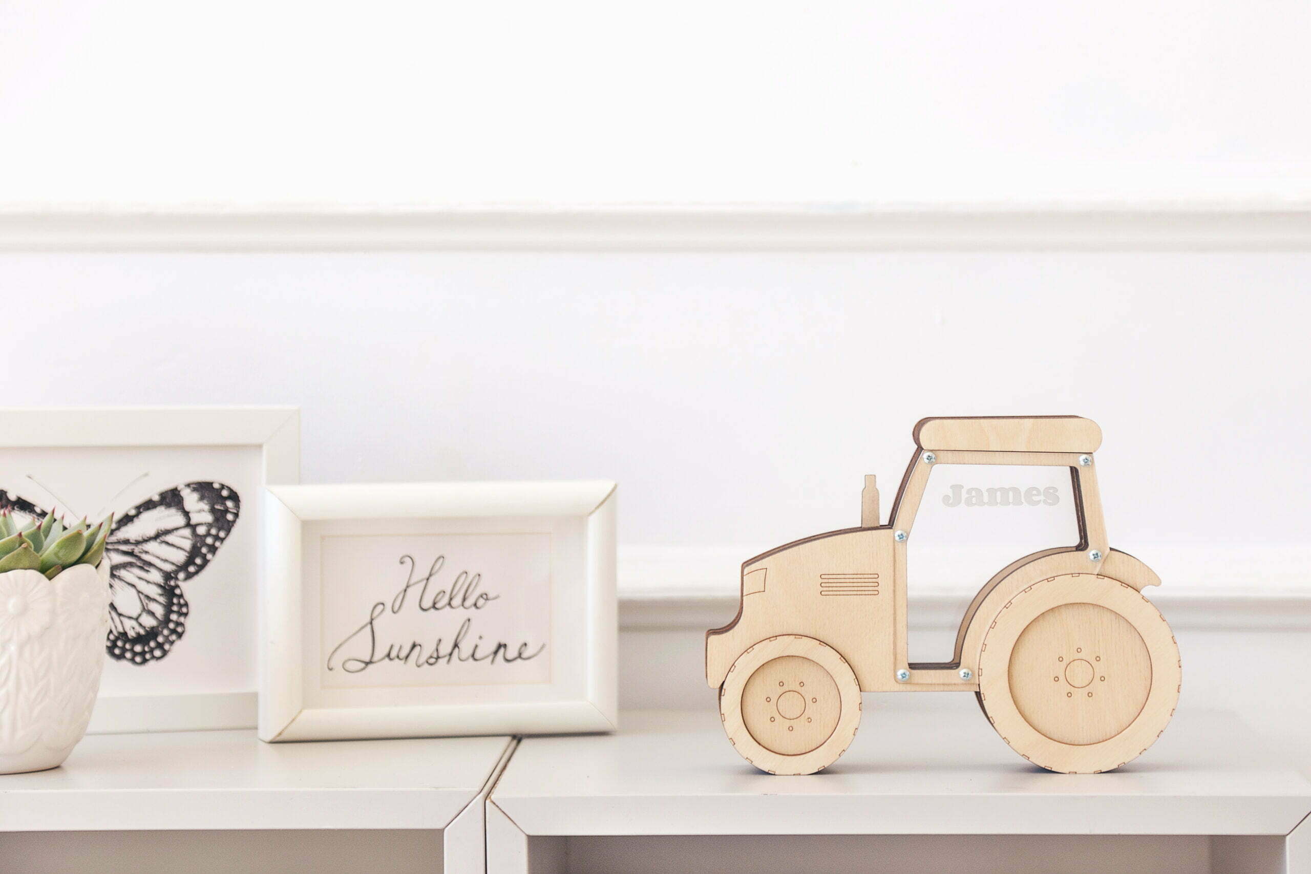 Medinė taupyklė traktorius – puiki dovanos idėja kiekvienam berniukui gimtadienio ar kita proga. Medinė taupyklė traktorius patiks ne tik vaikui, bet ir suaugusiam. Taupyklė taip pat tiks kaip kambario dekoro elementas.