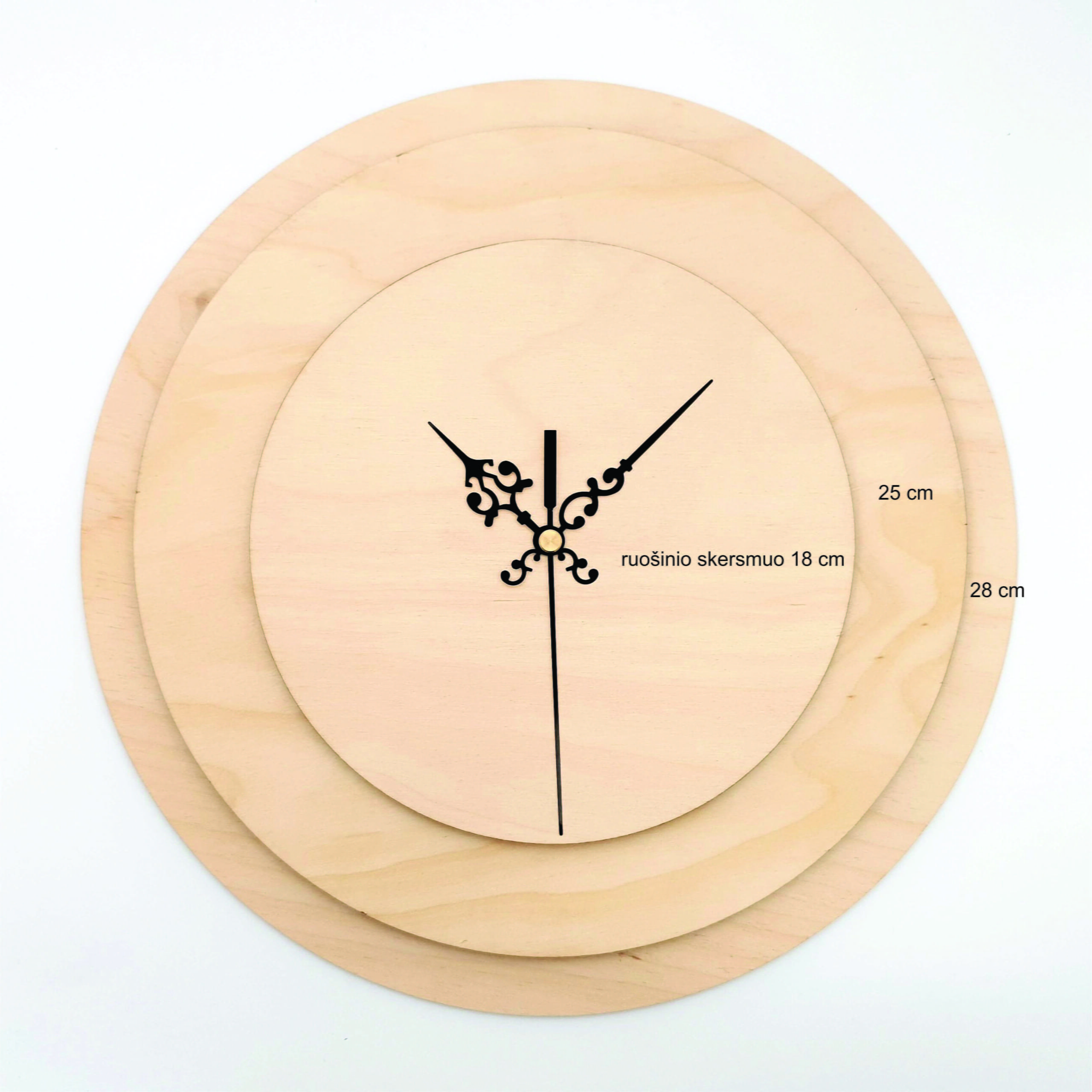 Pradžia / Parduotuvė / Medinės dekoracijos ir ruošiniai / Laikrodžių ruošiniai ir priedai