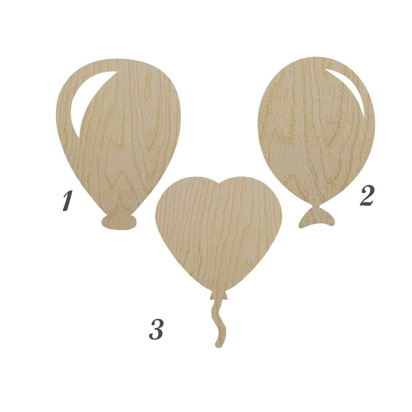 Medinė dekoracija Balionas išpjauta lazeriu iš 3 mm faneros. Galima pasirinkti 5, 10 arba 15 cm dydžio.