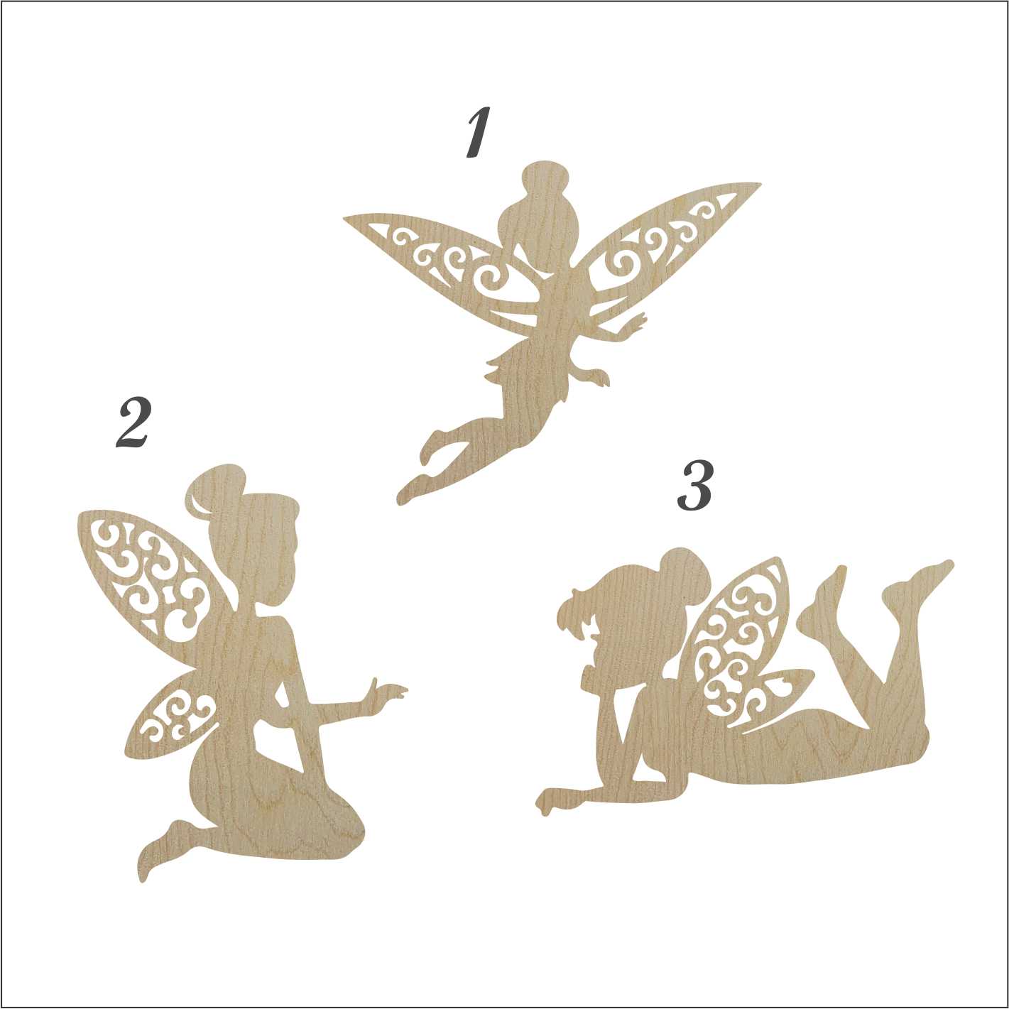 Medinė dekoracija Fėja išpjauta lazeriu iš 3 mm faneros. Galima pasirinkti 10 arba 15 cm dydžio.