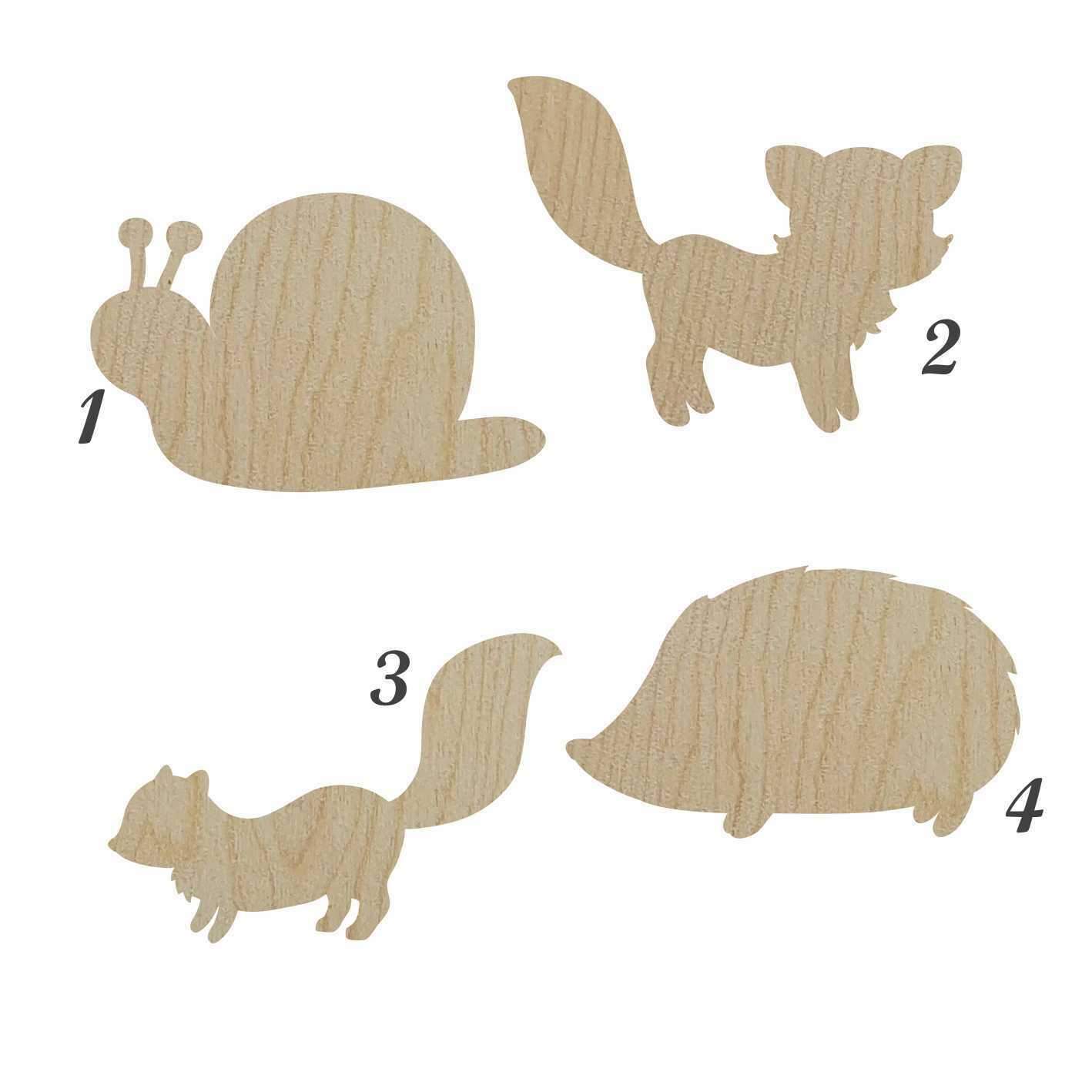 Medinė dekoracija Miško gyvūnai išpjauta lazeriu iš 3 mm faneros. Galima pasirinkti 5, 10 arba 15 cm dydžio.