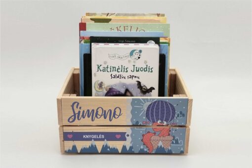 Medinė dėžė knygoms GyvūnėliaiKnygelių dėžė