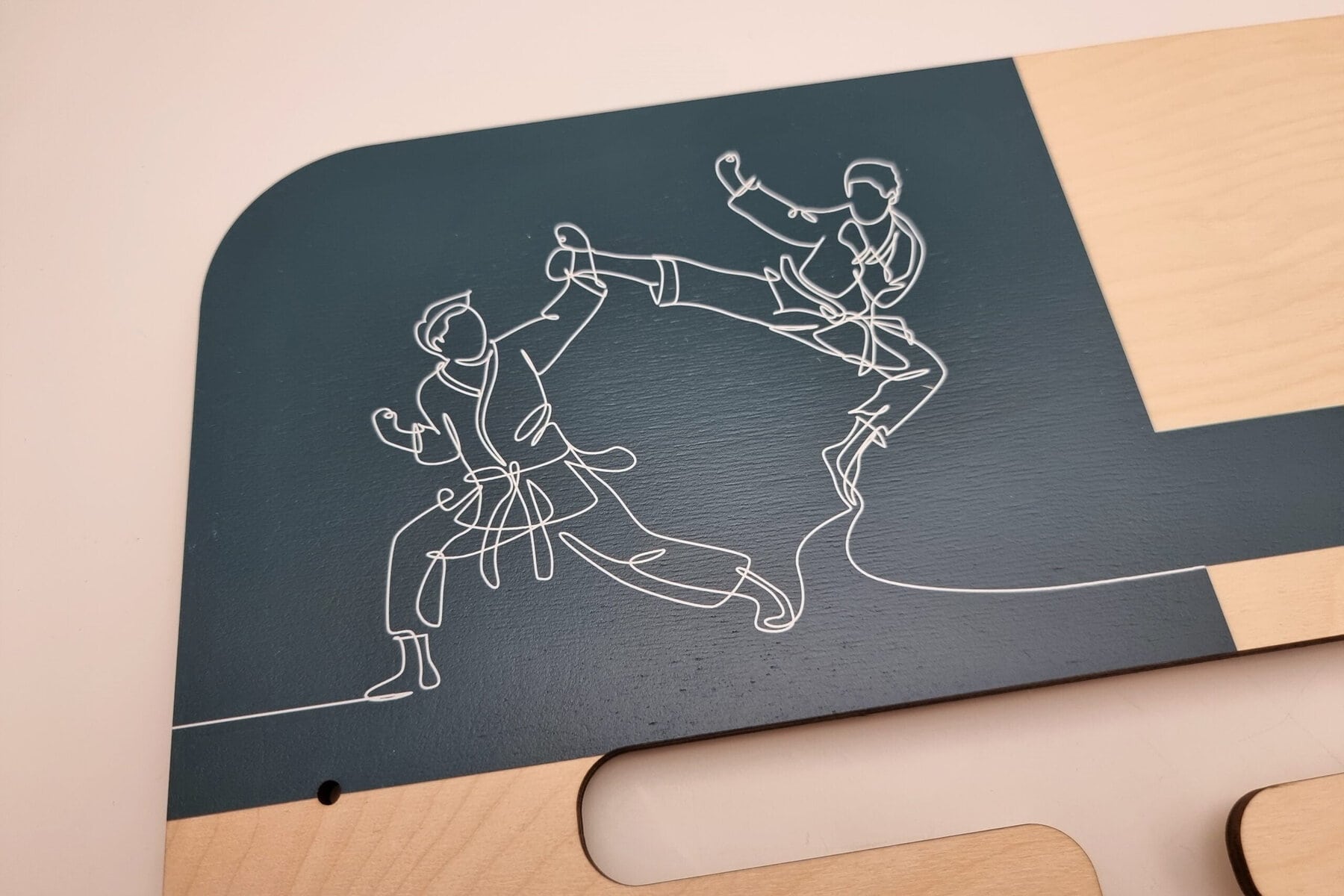 Medalių kabykla Karate pagaminta iš 6 mm storio beržo faneros. Paveiksliukas atspausdintas su UV printeriu.