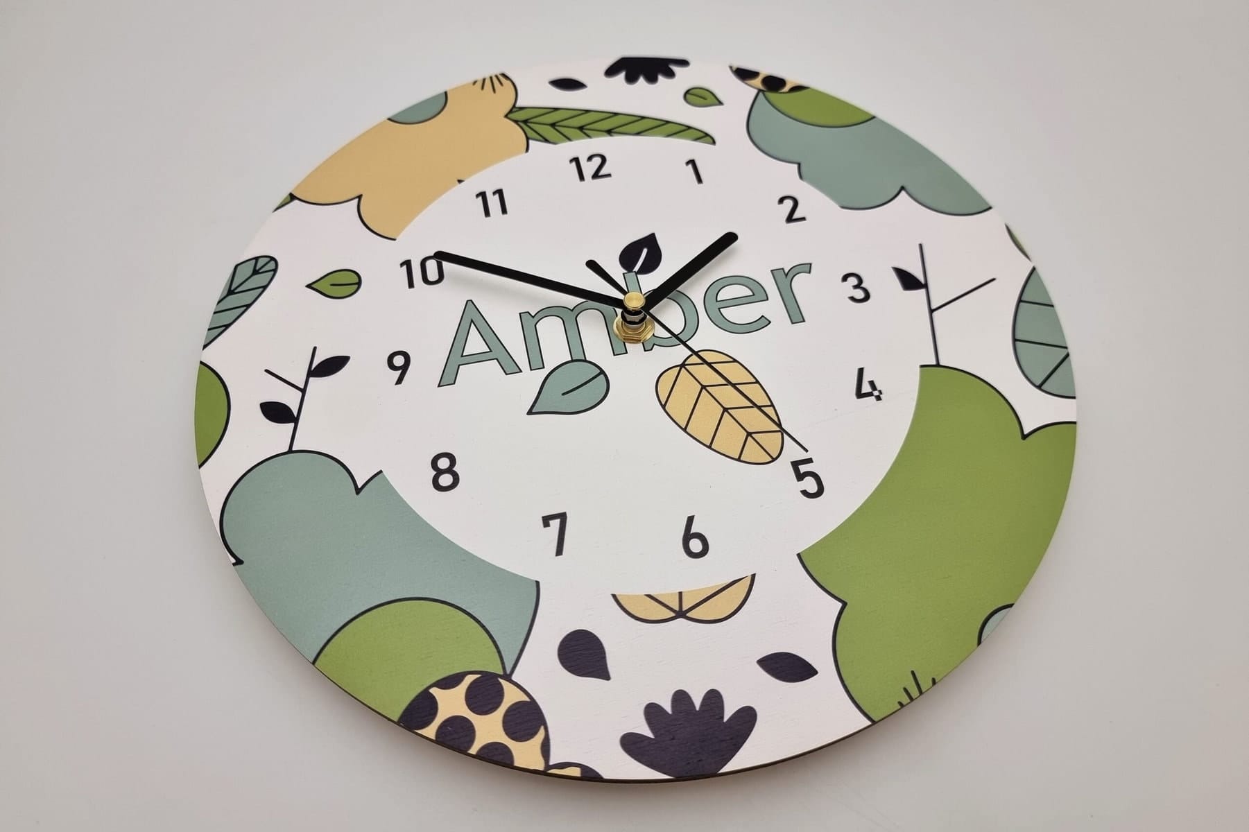 Sieninis laikrodis „Lapai” – stilinga ir smagi vaikų kambario interjero detalė. Sieninis laikrodis „Lapai” patiks tiek berniukams, tiek mergaitėms.