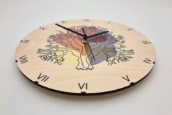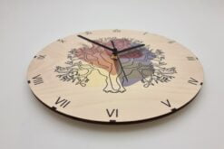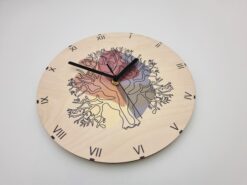 Sieninis laikrodis – stilinga ir kambario interjero detalė. Sieninis laikrodis pagamintas iš 6 mm storio faneros.