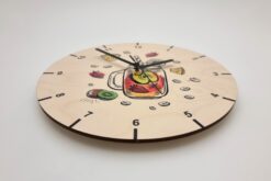 Sieninis laikrodis – stilinga ir kambario interjero detalė. Sieninis laikrodis pagamintas iš 6 mm storio faneros.