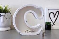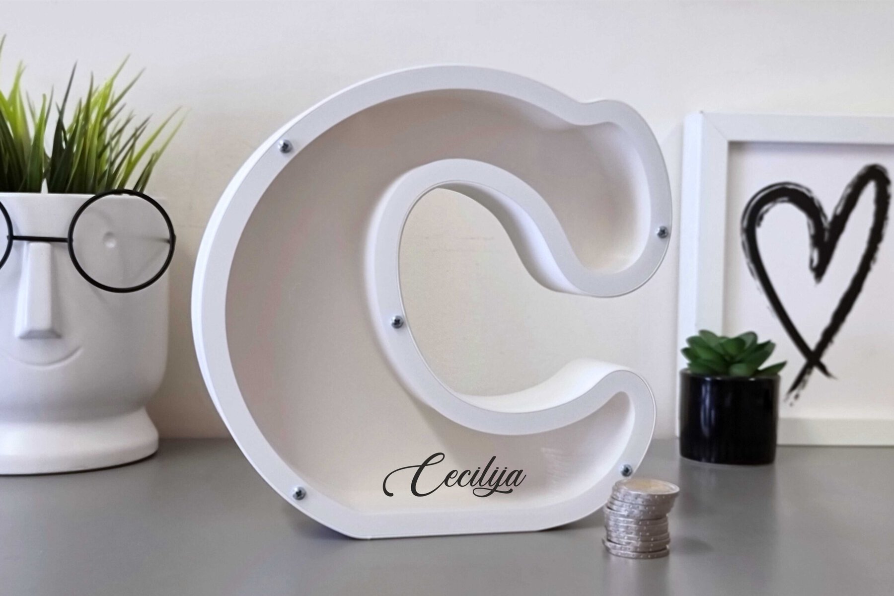 Balta taupyklė raidė C – puiki dovanos idėja gimtadienio, krikštynų ar kita proga. Taupyklės raidės tiks ne tik vaikams, bet ir suaugusiems. Balta taupyklė raidė C – stilinga kambario puošmena.