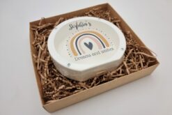 Ant skaidraus plastikinio dangtelio galime užrašyti vaikučio vardą ar kitą tekstą. Po užsakymo pateikimo, mes visada atsiunčiame taupyklės su Jūsų tekstu projektą patvirtinimui.